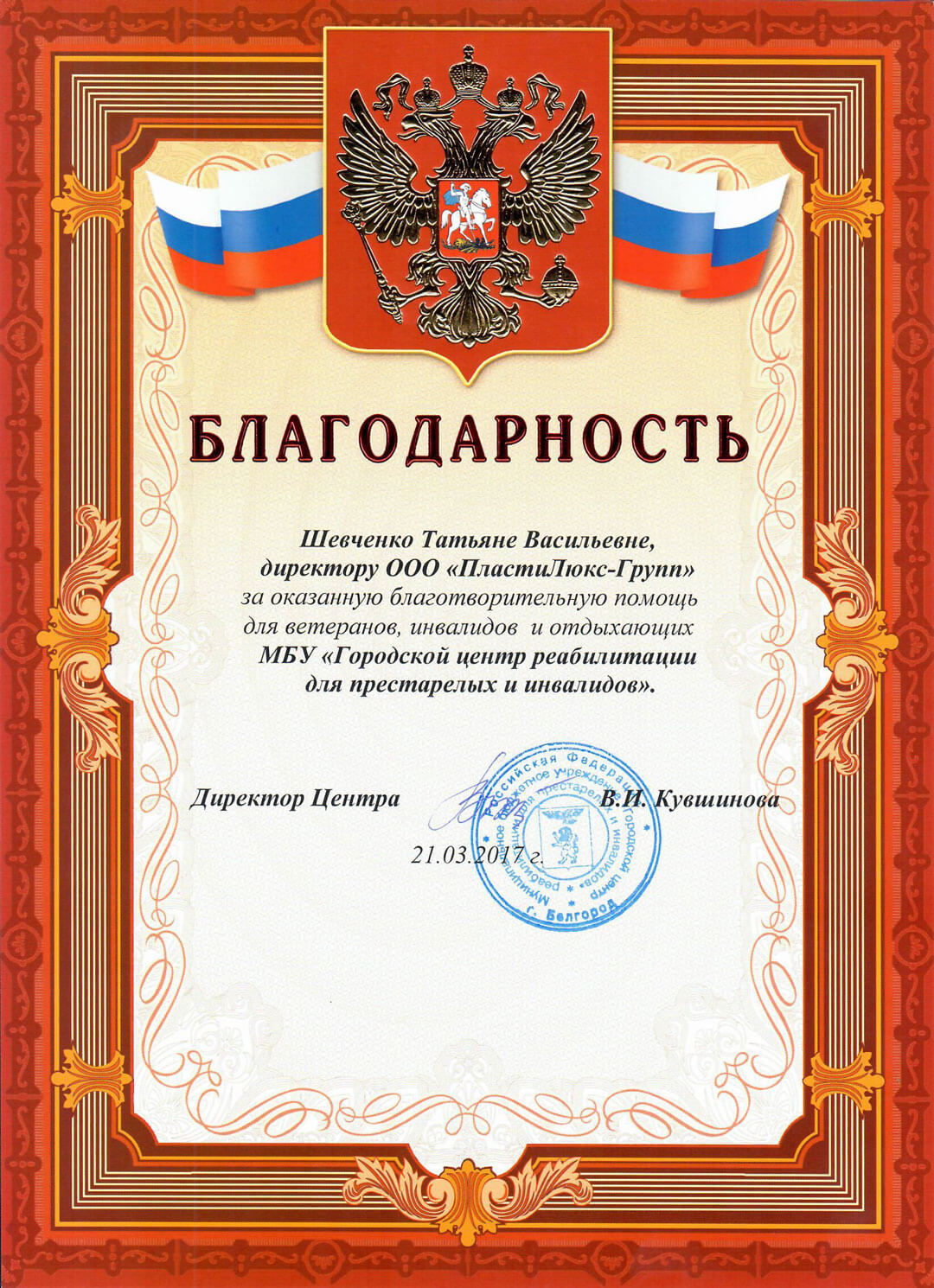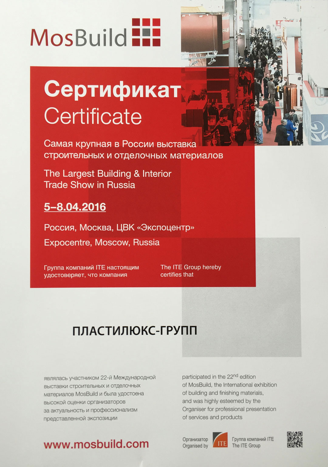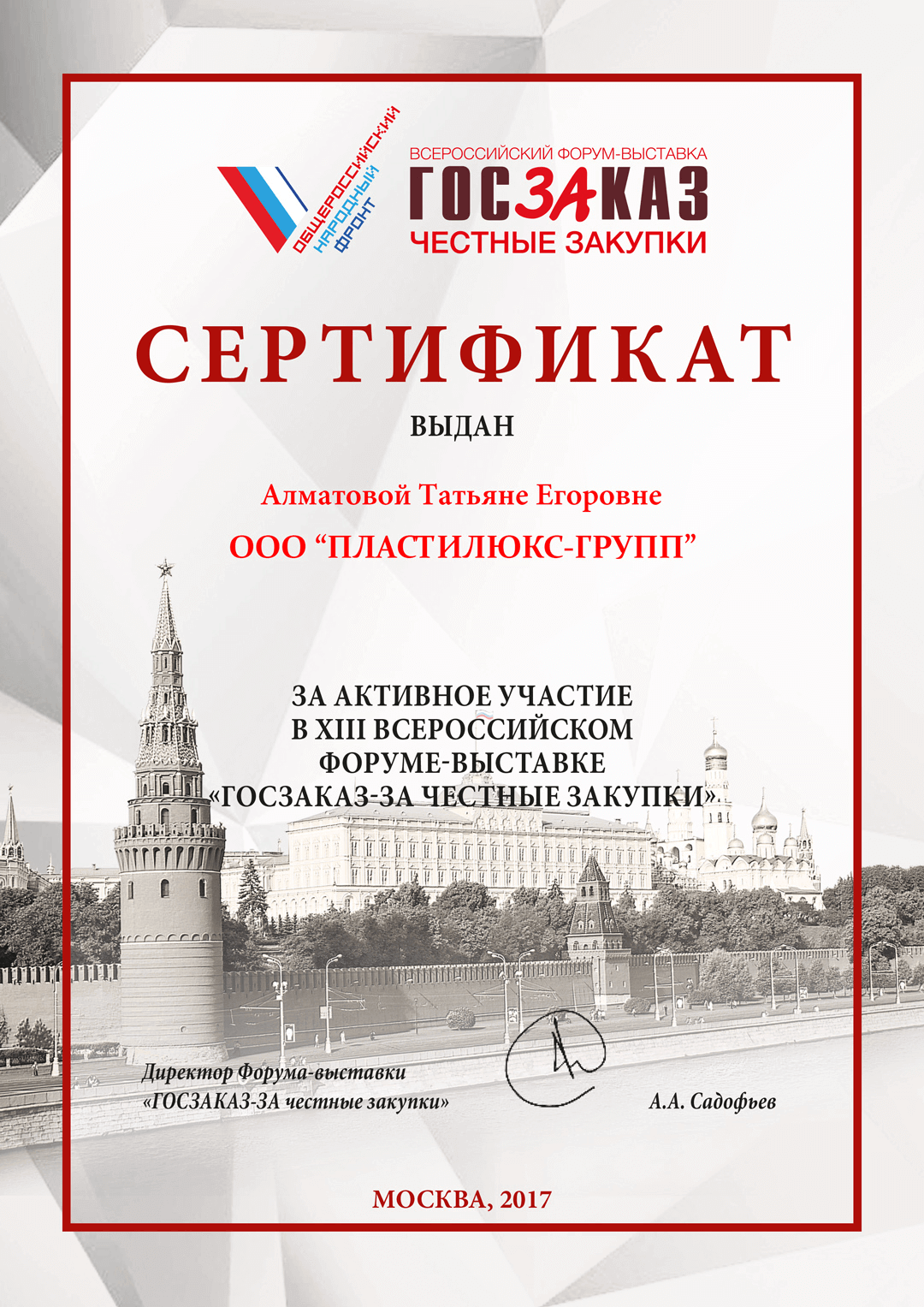 ООО «ПЛАСТИЛЮКС-ГРУПП» – награды и благодарности